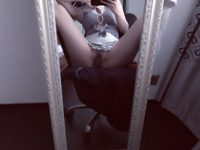 细腰翘臀美女在镜子前自拍